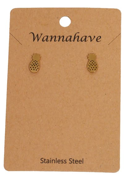 Goudkleurige stainless steel oorstekers ananas aantal