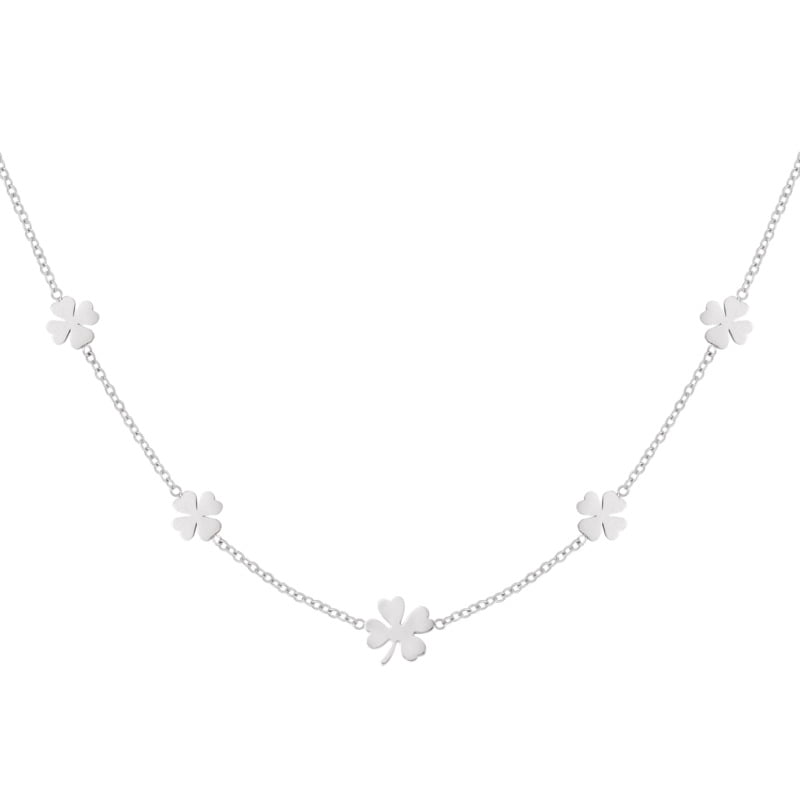Zilverkleurige stainless steel klavertjes ketting